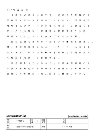福祉行財政と福祉計画