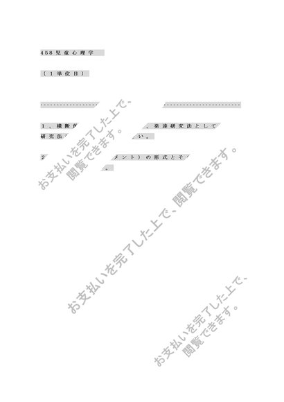 458児童心理学(1単位目)word版合格レポート 2010年度 明星大学