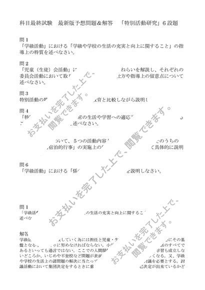 佛教大学通信教育課程 科目最終試験 最新版予想問題&解答 「特別活動研究」6設題