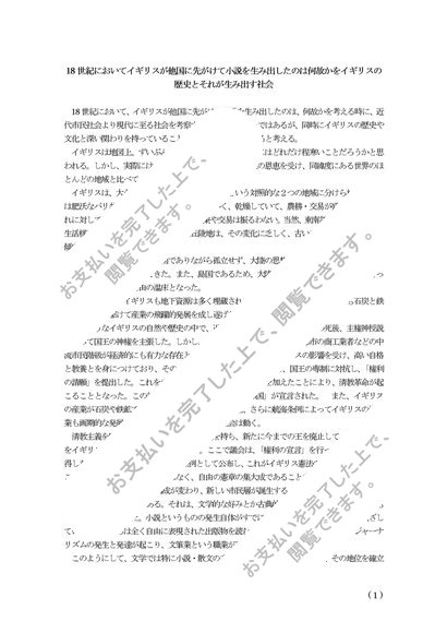 18世紀においてイギリスが他国に先がけて小説を生み出したのは何故かをイギリスの歴史とそれが生み出す社会