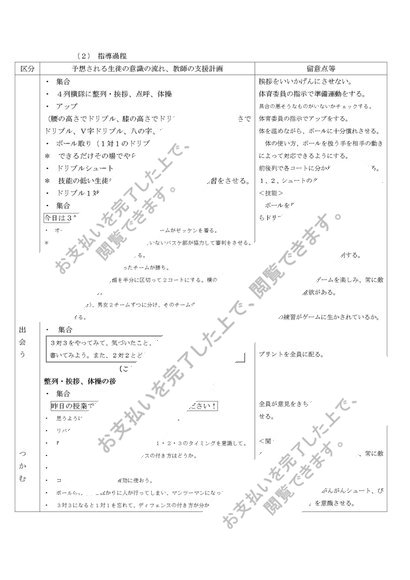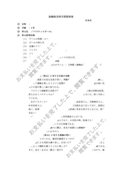 中学校 第1学年 保健体育科学習指導案(細案) バスケットボール 3対3