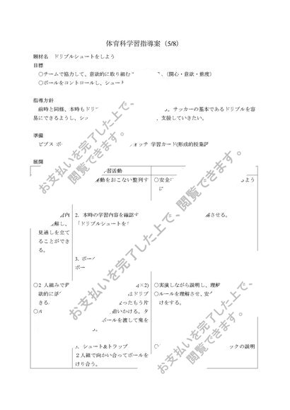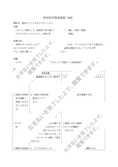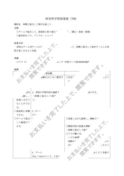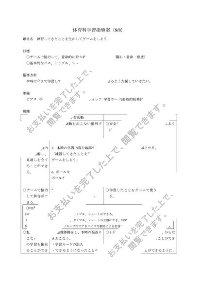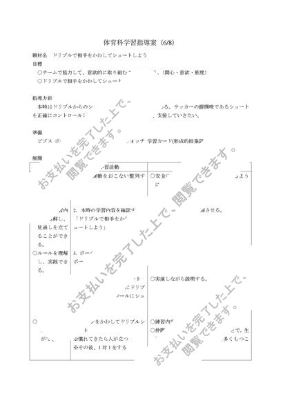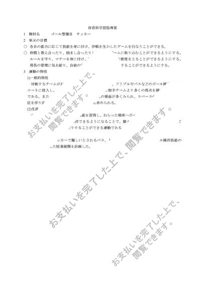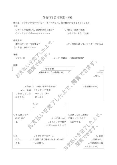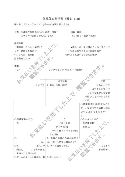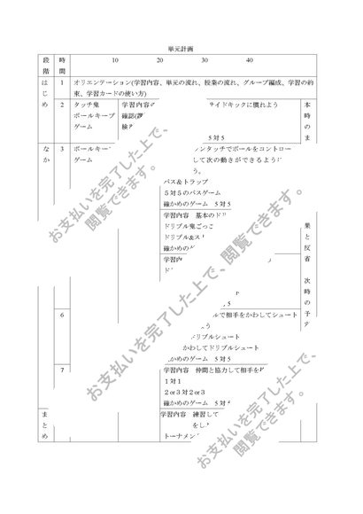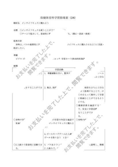 中学校 第1学年 保健体育科学習指導案(全8時間) サッカー