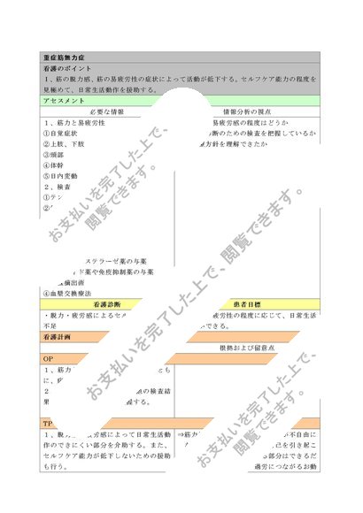 重症筋無力症患者様の看護計画