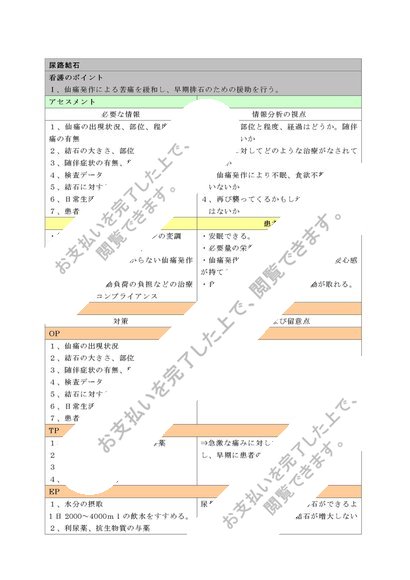 尿路結石患者様の看護計画