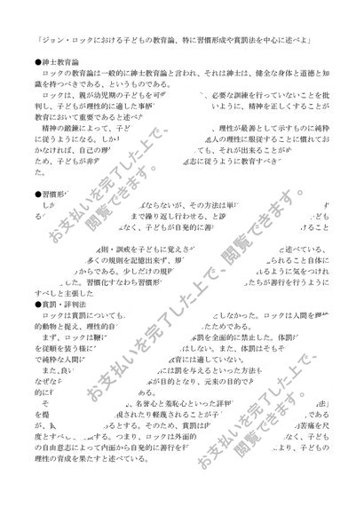 ジョン・ロックにおける子どもの教育論、特に習慣形成や賞罰法を中心に述べよ