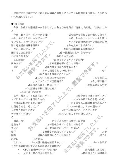 中学校または高校での『総合的な学習の時間』について自ら指導案を作成し、それについて解説しなさい