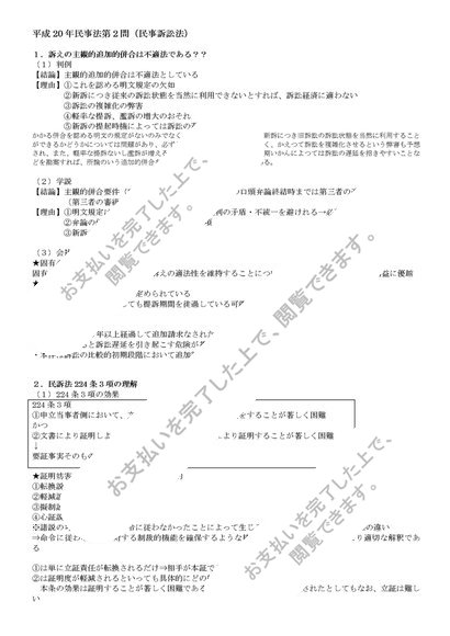 新司法試験論文解説平成20年民事法第2問(民事訴訟法)