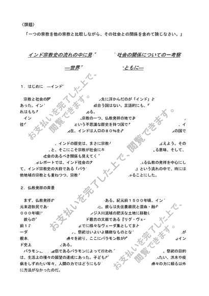 インド宗教史の流れの中に見る、宗教と社会の関係についての一考察:世界三大宗教間の比較とともに[早稲田・法学部・評価A]
