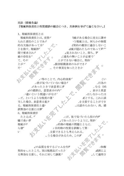 民法(債権各論) 『瑕疵担保責任と性質錯誤の競合につき、具体例を挙げて論じなさい。』