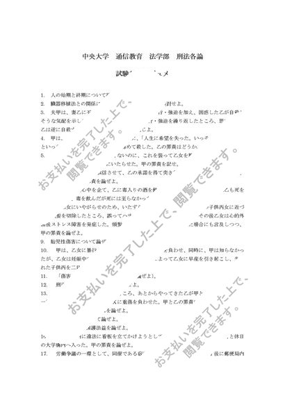 中央大学通信教育 法学部 刑法各論 試験対策