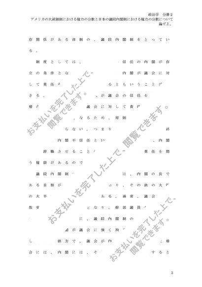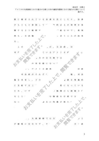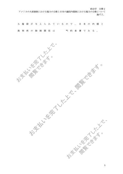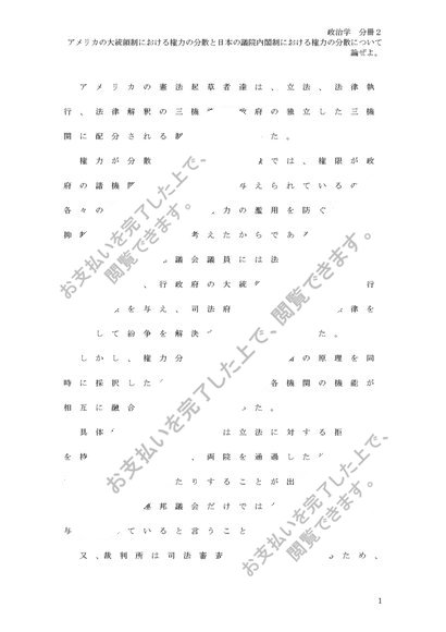 アメリカの大統領制における権力の分散と日本の議院内閣制における権力の分散について論ぜよ。