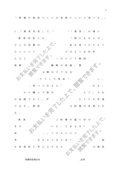 保健科指導法Ⅱ 「保健の教材づくりの発想について述べよ。」 課題レポートA判定