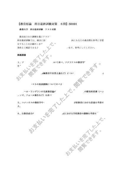 教育原論 【テスト】 佛大科目最終試験 S0101 6問 95点