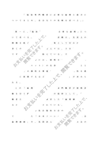基礎福祉演習 3,200文字レポート 「福祉専門職者に必要な倫理と能力についてまとめ、自分なりの見解を述べよ。」 清書 終