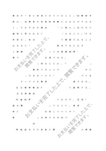 精神医学 3,200文字レポート「精神療法及び環境・社会療法について述べなさい」清書 終