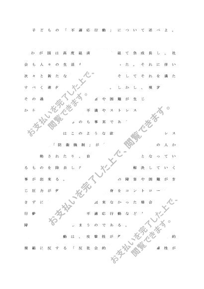 教育心理学 3,200文字レポート「子どもの不適応行動について」清書 終