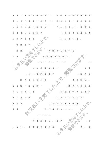 社会保障論 3,200文字レポート「医療保険制度の概要について」清書 終