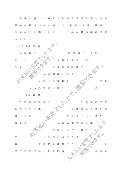 精神保健学 3,200文字レポート「ライフサイクルにおける精神保健について」清書 終