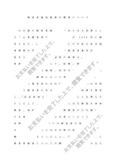 障害者福祉論 3,200文字レポート「障害者福祉施策の概要について」 下書き 終わり