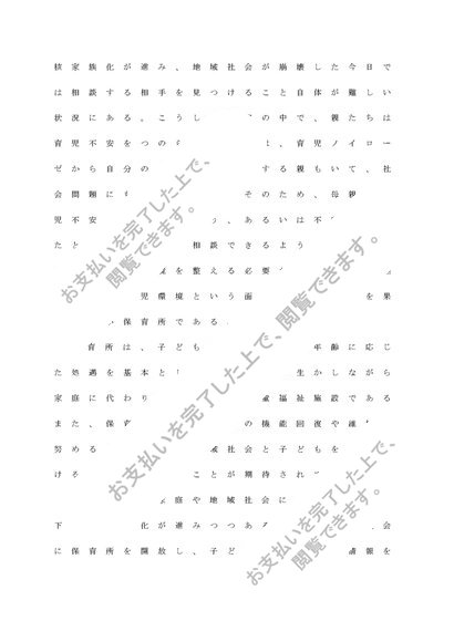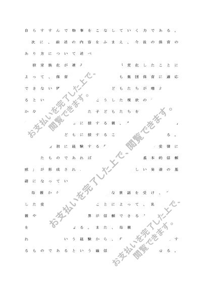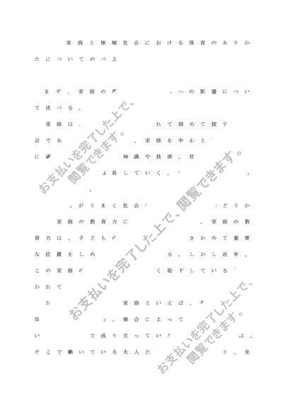 児童心理学 3,200文字レポート「家庭と地域社会における保育のありかたについてのべよ」 清書 終り