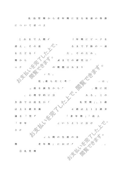 生涯発達心理学 3,200文字レポート「乳幼児期から老年期に至る発達の特徴について述べよ」 清書 終わり