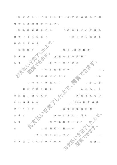 老人福祉論 3,200レポート 「在宅福祉サービスの体系と介護保険制度について」 清書 終