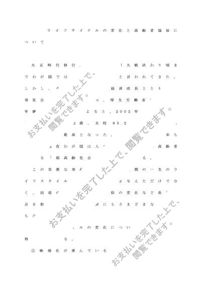 老人福祉論 3,200文字レポート 「ライフサイクルの変化と高齢者福祉について」 清書 終わり
