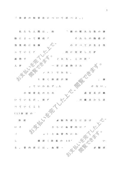 解剖生理学Ⅰ 「体液の恒常化について述べよ。」 課題レポートB+判定