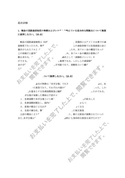 国際経済論MA メディア授業 試験・理解度チェック1・2・3・4 合格レポート