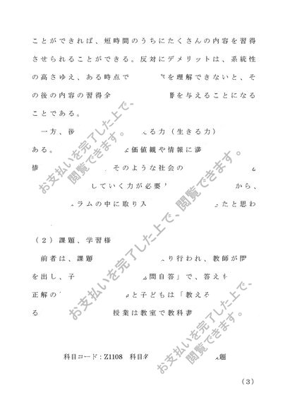 Z1108教育方法学1レポート(B判定)