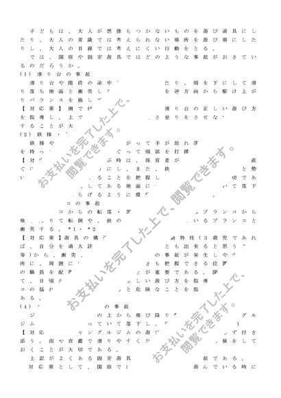 ≪聖徳短通信≫園庭や固定遊具での事故の原因について述べ、その対応策について考察せよ.