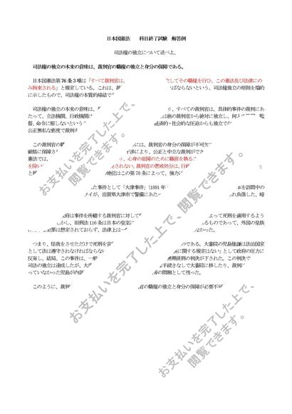 科目終了試験 解答例 日本国憲法⑧ 司法権の独立