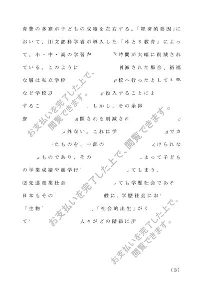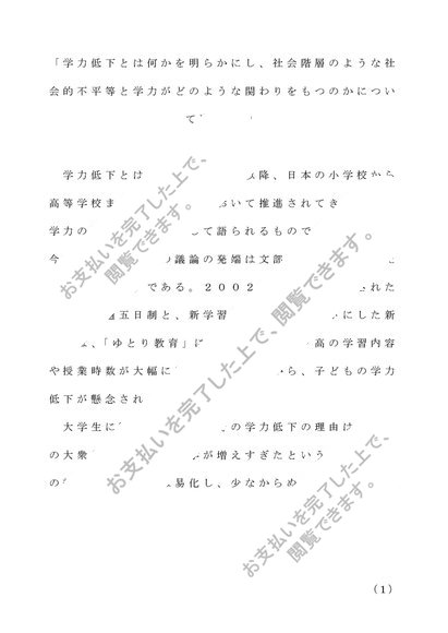 仏教大学 教育社会学 第2設題「学力低下とは何かを明らかにし、社会階層のような社会的不平等と学力がどのような関わりをもつのかについて述べよ。」