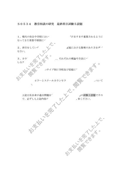 【2012年度 試験対策】佛教大学 S0534 教育相談の研究 科目最終試験5設題まとめ