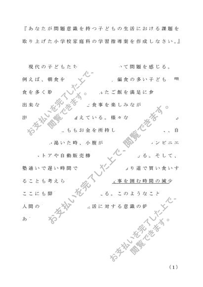 佛教大学 S0620 家庭科教育法 設題2『あなたが問題意識を持つ子どもの生活における課題を取り上げた小学校家庭科の学習指導案を作成しなさい。』