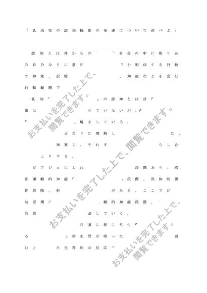 子どもの心理入門 「乳幼児の認知機能の発達について述べよ」
