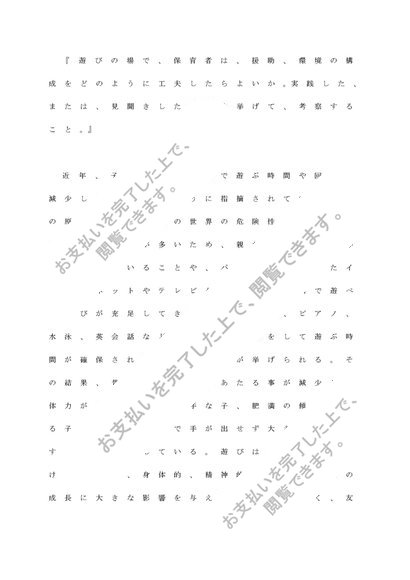 子どもの生活とあそび 『遊びの場で、保育者は、援助、環境の構成をどのように工夫したらよいか。実践した、または、見聞きした事例を挙げて、考察すること。』