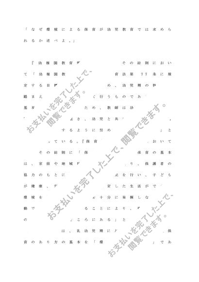 幼児理解 「なぜ環境による保育が幼児教育では求められるか述べよ。」