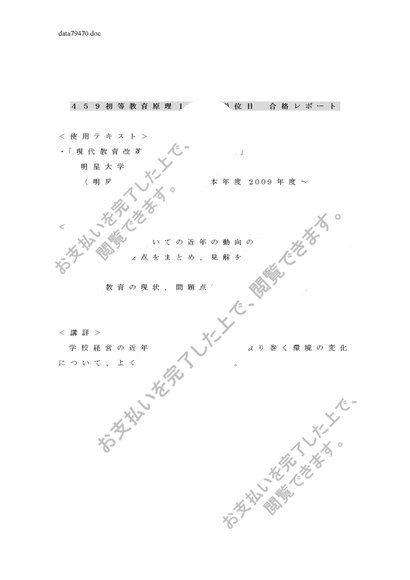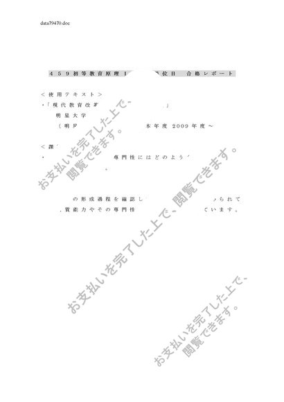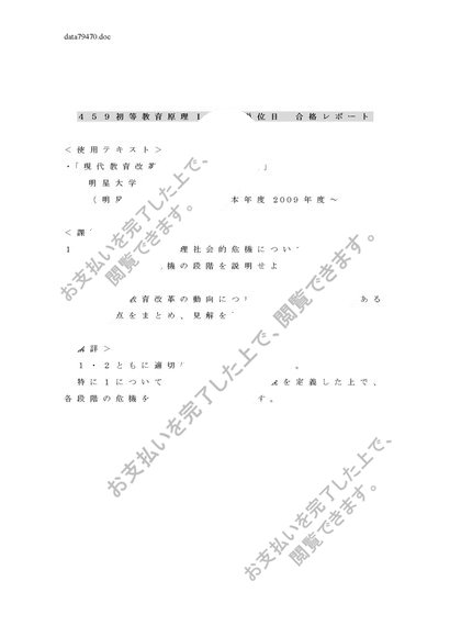 459初等教育原理 4単位分合格レポート