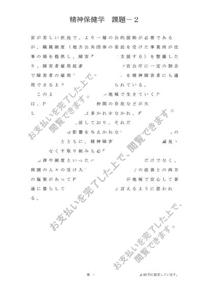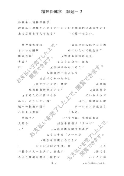 精神保健学 「地域リハビリテーションを効率的に進めていく上で必要と考えられるもの」