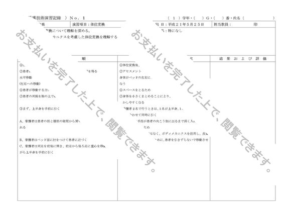 体位変換 看護技術演習記録