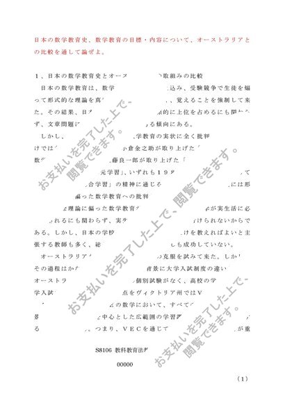S8106 佛教大学 教科教育法数学2:第1設題 A評価レポート A4版2011年度改定仕様