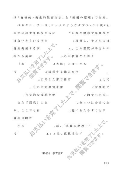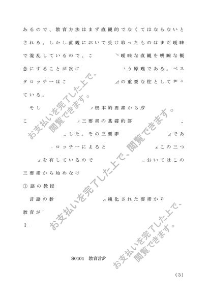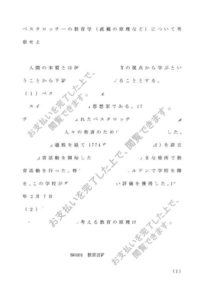 教育原論 (第1設題 ペスタロッチーの教育学について考察せよ)