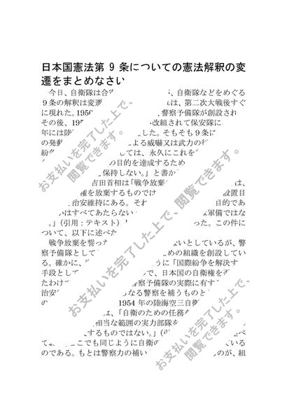 日本国憲法第9条についての憲法解釈の変遷について。
