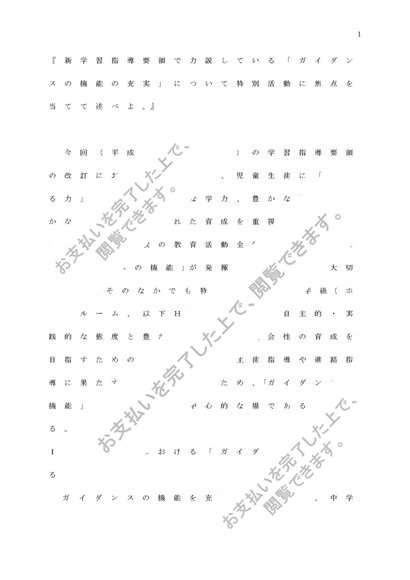 特別活動の指導法 『新学習指導要領で力説している「ガイダンスの機能の充実」について特別活動に焦点を当てて述べよ。』 課題レポートA判定