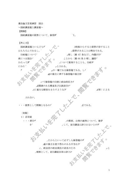 憲法論文答案練習国会 国政調査権と検察権