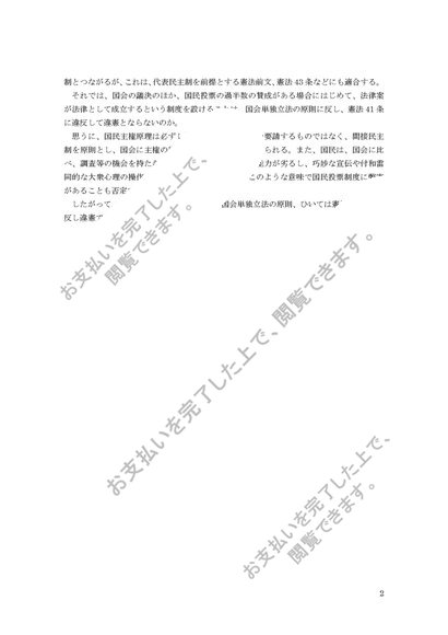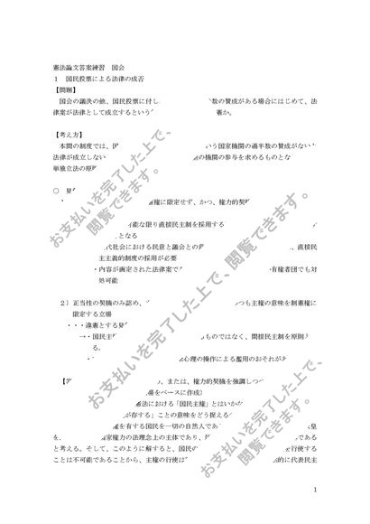 憲法論文答案練習国会 国民投票による法律の成否 委任立法