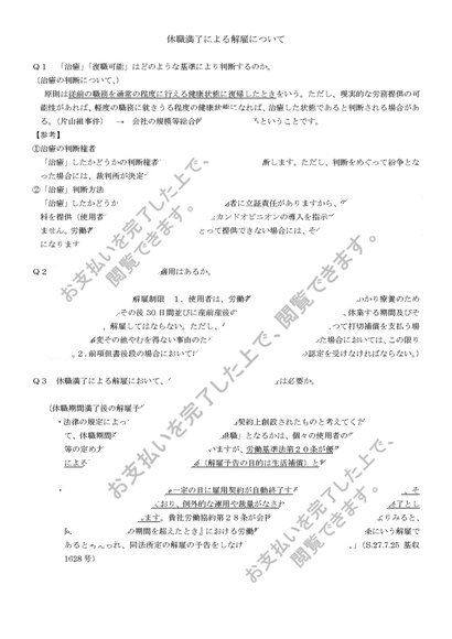 休職満了による解雇について