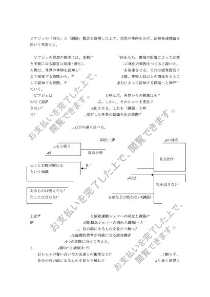ピアジェの「同化」と「調節」概念を説明した上で、幼児の事例をあげ、認知発達理論を用いて考察せよ