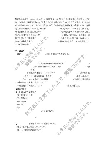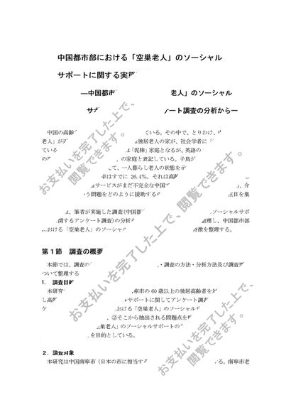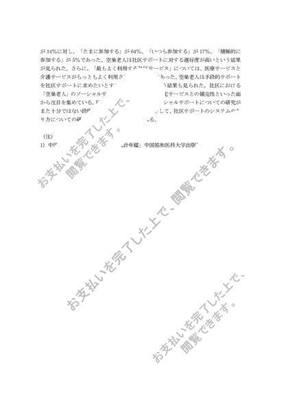 中国都市部における「空巣老人」のソーシャルサポートに関する実態